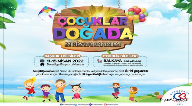 23 Nisan Ulusal Egemenlik ve Çocuk Bayramı nedeni ile düzenlenecek doğa yürüyüşüne tüm çocukları davet eden Belediye Başkanı Vahap Akay, “Yürüyüşümüze kayıt yaptıracak çocuklarımızı 23 Nisan Cumartesi günü 09.00’da Belediye önünden otobüsler ile alarak, Balkaya Ormanlarına götüreceğiz. Eşsiz doğal güzelliklerinin bulunduğu 5 kilometrelik parkurda çocuklarımız ile birlikte şarkılar, türküler söyleyerek yürüdükten sonra birlikte yemek yiyeceğiz. Ardından çocuklarımızı alarak Çerkezköy’e döneceğiz” ifadelerini kullandı.
