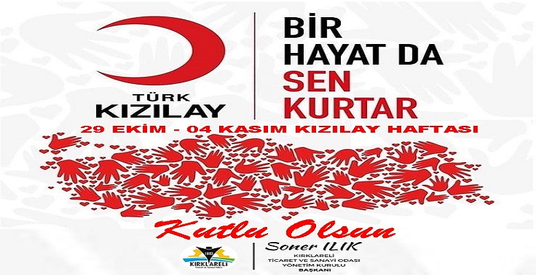 29 Ekim – 4 Kasım tarihleri arasında kutlanmakta olan “Kızılay Haftası” dolayısıyla mesaj yayımlayan Kırklareli Ticaret ve Sanayi Odası (Kırklareli TSO) Yönetim Kurulu Başkanı Soner Ilık şunları kaydetti: