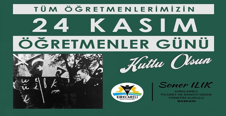 “24 Kasım Öğretmenler Günü” dolayısıyla bir mesaj yayımlayan Kırklareli Ticaret ve Sanayi Odası (Kırklareli TSO) Yönetim Kurulu Başkanı Soner Ilık; “Cumhuriyetimizin kurucusu Gazi Mustafa Kemal Atatürk’e, 24 Kasım 1928 tarihinde Millet Mektepleri Başöğretmenliği Unvanının Verilişinin 96. Yıldönümü’nü ve bu anlamlı günü “Öğretmenler Günü” olarak kutlamanın mutluluğu içindeyiz. Millî, manevî, insanî, ahlâkî ve kültürel değerlerimizi içtenlikle benimseyen, bunları geliştiren ve koruyan, ailesini, vatanını ve milletini gönülden severek bunları yüceltmek için sürekli çaba harcayan öğretmenlerimiz, yaşadıkları zorluklara rağmen özverili çalışmalarıyla, toplumumuzu münevver hale getirebilmek için var güçleriyle çalışmaktadırlar. Toplumların gelişip modern bir hal almasında en büyük paya sahip olan öğretmenler, eğitim dünyasının vazgeçilmez neferleridir. Onların yetiştireceği nesiller, hiç şüphesiz ki ülkemizin geleceğini şekillendiren kişiler olarak karşımıza çıkacaktır. İşte bu yüzden kutsal bir göreve sahip olan öğretmenlerimiz, bizler içinde son derece önemli ve değerlidir. Başöğretmen Atatürk’ün “İnsanlık toplumunun en fedakâr, en saygıdeğer unsurları hiç şüphesiz öğretmenlerdir” sözü, öğretmenlerimizin değerini açıkça ortaya koymaktadır. Bu nedenle her türlü fedakârlıktan kaçınmadan özveriyle çalışan öğretmenlerimize ne kadar teşekkür etsek azdır. Çağdaşlaşmanın, modernleşmenin, kalkınmış ve mutlu bir toplum olmanın yolu da şüphesiz ki; eğitimden geçmektedir. Günümüz modern toplumlarına baktığımızda halklarını donanımlı ve birikimli kılmak adına eğitime büyük önem vermekte olduklarını görürüz. Zira bir milletin yarınları anlamına gelen çocuklarına ve gençlerine yapılan yatırım, o milletin yarınlarına yapılan yatırımdır. Öğretmenler; ülkemizde gelecekle ilgili hedeflere ulaşılmasında önemli görevler üstlenecek ve kalkınmayı gerçekleştirecek, nesilleri yetiştiren, yurdumuzun her köşesine ulaşarak fedakârlık gösteren, eğitmeyi ve öğretmeyi bir ideal olarak benimseyip ülkemizi muasır medeniyet seviyesine çıkarma gayreti gösteren, eğitim camiamızın en kıymetli mensuplarıdır.