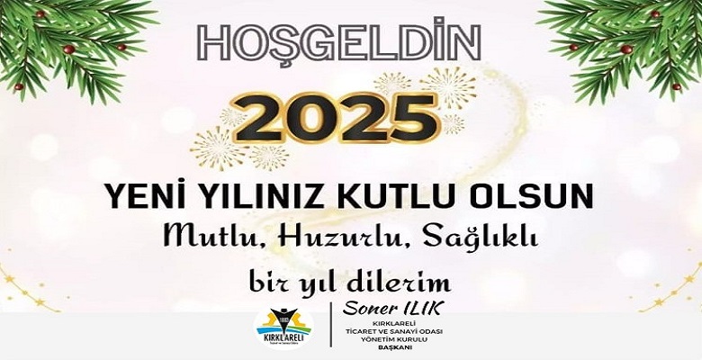 Kırklareli Ticaret ve Sanayi Odası (Kırklareli TSO) Yönetim Kurulu Başkanı Soner Ilık, Yeni Yıl dolayısıyla yayımladığı mesajında; “Acısıyla tatlısıyla 2024 yılını bitirip umut ve beklentilerimizle 2025 yılına giriyoruz. Öncelikle yeni yıl tüm insanlığa sağlık, huzur, barış ve refah getirsin. Yeni yılda ülkemizin ve güzel kentimiz Kırklareli’mizin daha aydınlık, huzurlu, istikrarlı ve ekonomik açıdan refah seviyesi yüksek günlere ulaşması hepimizin ortak temennisidir. Bunun içinde durmadan, yorulmadan ilimizin, sosyal ve ekonomik anlamda gelişimini hızlandırmak için bugüne kadar olduğu gibi bundan sonra da Kırklareli Ticaret ve Sanayi Odası olarak çalışmalarımıza ara vermeden devam ederek halkımızın ve üyelerimizin ihtiyaçlarına çözüm üretme çabası içerisinde olacağız.