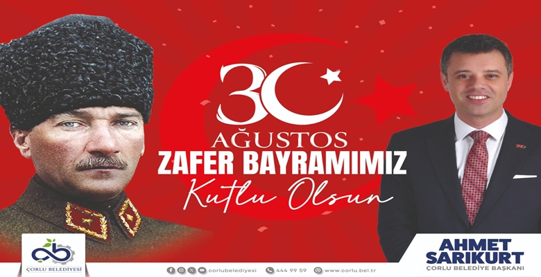 Çorlu Belediye Başkanı Ahmet Sarıkurt, 30 Ağustos Zafer Bayramı dolayısıyla bir kutlama mesajı yayımladı. Başkan Sarıkurt mesajında, Türk milletinin destansı zaferini kutlayarak vatan sevgisinin ve bağımsızlık ruhunun önemine dikkat çekti.