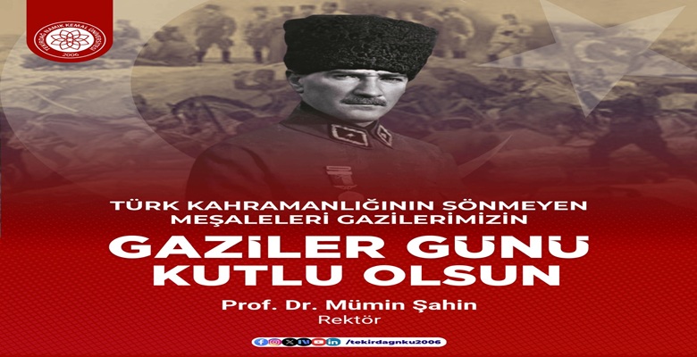 Tekirdağ Namık Kemal Üniversitesi Rektörü Prof. Dr. Mümin ŞAHİN, 19 Eylül Gaziler Günü dolayısıyla yayımladığı mesajında, gaziliğin Türk milletinin tarih boyunca en yüce onur kaynaklarından biri olduğunu belirtti.