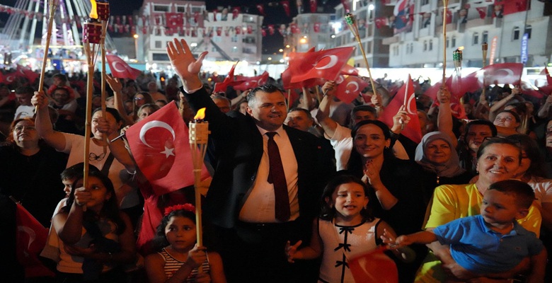 “Bayrağını yüreğinde taşıyan, alkışında vatan sevgisi, bakışında umut olan, çocuğuyla, genciyle, yaşlısıyla bu meydanı dolduran güzel insanlar… Biz bu şehrin kalbiyiz, umuduyuz, dünü, bugünü ve yarınlarıyız…
