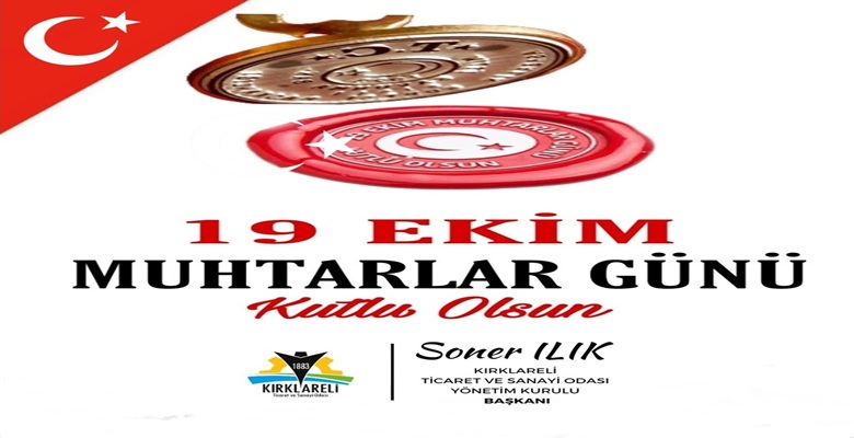 “19 Ekim Muhtarlar Günü” dolayısıyla Kırklareli Ticaret ve Sanayi Odası (Kırklareli TSO) Yönetim Kurulu Başkanı Soner Ilık yayımladığı mesajında şunları kaydetti: