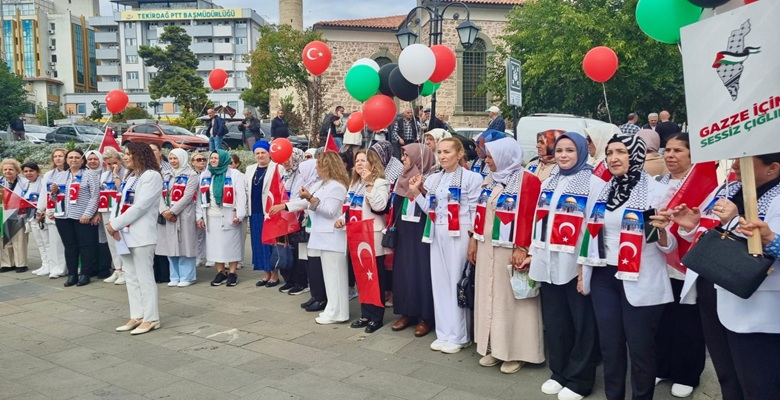Gazze’de yaşanan zulmün yıl dönümünde; kadınların vicdanı, duası ve sessiz haykırışıyla Tekirdağ AK Parti Kadın Kollarının basın açıklaması.