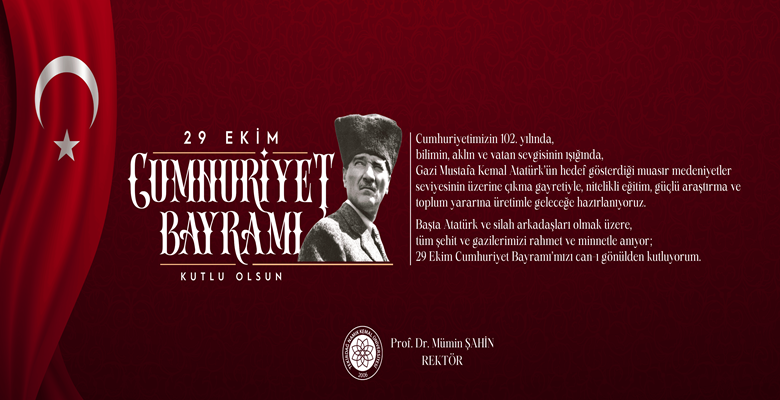 Tekirdağ Namık Kemal Üniversitesi (Tekirdağ NKÜ) Rektörü Prof. Dr. Mümin ŞAHİN, 29 Ekim Cumhuriyet Bayramı dolayısıyla yayımladığı yazılı mesajda, Cumhuriyetin 102. yılını bilim, akıl ve vatan sevgisi ekseninde yükselen ortak idealin bugüne ve geleceğe uzanan en güçlü teminatı olarak kutladıklarını belirtti.