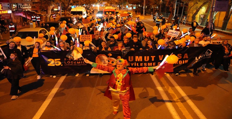Lösemili çocukların umut dolu yarınlarına destek olmak amacıyla düzenlenen yürüyüş, Kitap Kafe önünden başlayarak Cumhuriyet Meydanı Çorlu Belediye binası önünde sona erdi.