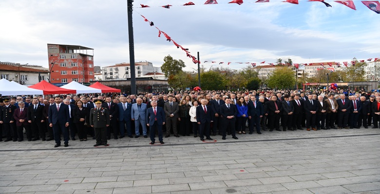 Atatürk Anıtı’na çelenklerin sunulmasının ardından saygı duruşunda bulunulması ve İstiklal Marşı’nın söylenmesi ile tören devam ederken; günün anlam ve önemini belirten konuşma Keşan Belediye Başkanı Op. Dr. Mehmet Özcan tarafından yapıldı.