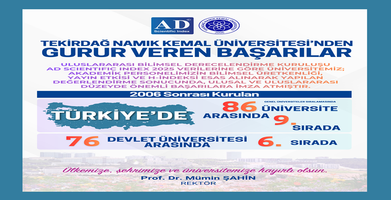 AD SCIENTIFIC INDEX 2025’TE TEKİRDAĞ NKÜ’DEN GURUR VEREN BAŞARILAR