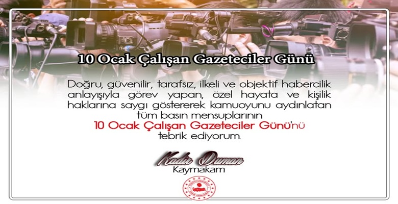 Kaymakam Kadir Duman mesajında, “Basın; toplumun haber alma hakkının teminatı olup, şeffaf ve hesap verebilir bir yönetim anlayışının güçlenmesine önemli katkı sunmaktadır. Büyük bir sorumluluk bilinciyle görev yapan basın mensuplarımız, kamuoyunun doğru bilgilendirilmesi adına fedakârca çalışmaktadır” ifadelerine yer verdi.