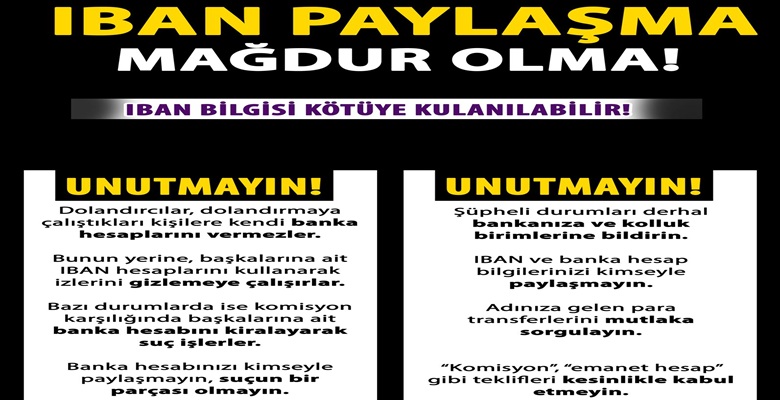 Yetkililer, banka kartı, IBAN ve dijital bankacılık bilgilerinin kesinlikle üçüncü kişilerle paylaşılmaması gerektiğini vurgulayarak, vatandaşların kendi güvenliklerini korumalarının önemine işaret etti.