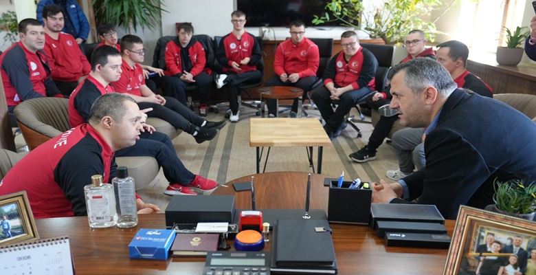 Saray Belediye Başkanı Abdül Taşyasan, ülkemizi uluslararası arenada gururla temsil eden Down Sendromlular Basketbol Milli Takımı’nı makamında ağırladı. Samimi bir atmosferde gerçekleşen ziyarette, özel sporcuların azmi ve sporun birleştirici gücü vurgulandı.