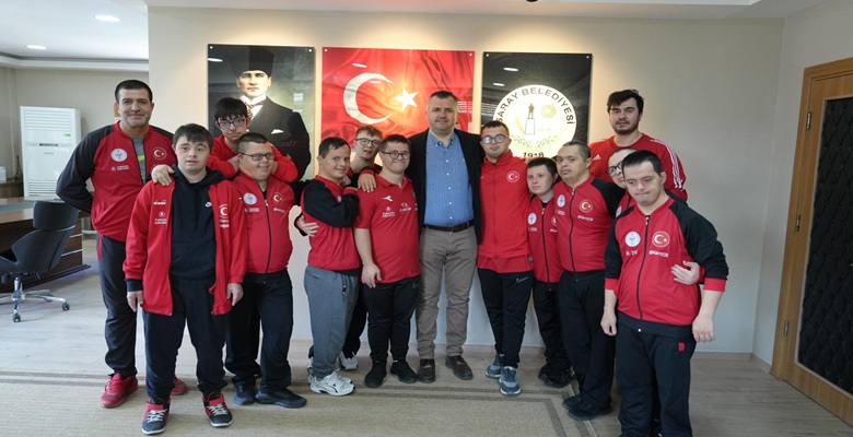 Ülkemizi uluslararası arenada gururla temsil eden Down Sendromlular Basketbol Milli Takımı, Dünya Şampiyonası hazırlıkları kapsamında Tekirdağ’ın Saray ilçesinde kampa girdi. Macaristan’da düzenlenecek olan Down Sendromlular Basketbol Dünya Şampiyonası öncesi çalışmalarını sürdüren milli takım, Saray’daki kampta moral depoluyor. Kamp programları kapsamında Down Sendromlular Basketbol Milli Takım oyuncuları ve teknik heyeti, Çarşamba günü Saray Belediye Başkanı Abdül Taşyasan’ı makamında ziyaret etti. Özel sporcularla yakından ilgilenen ve onlarla sohbet eden Başkan Taşyasan, özel sporcuların disiplini ve başarısının tüm topluma örnek olması gerektiğini belirtti.
