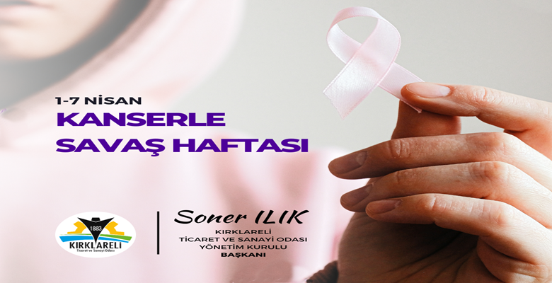 Kırklareli Ticaret ve Sanayi Odası (Kırklareli TSO) Yönetim Kurulu Başkanı Soner Ilık, her yıl 1-7 Nisan tarihleri arasında çeşitli etkinliklerle gündeme gelen “Kanserle Savaş Haftası” dolayısıyla yayımladığı mesajında, kanserle mücadelenin yalnızca sağlık kuruluşlarının değil, toplumun tüm kesimlerinin ortak sorumluluğu olduğuna dikkat çekti.