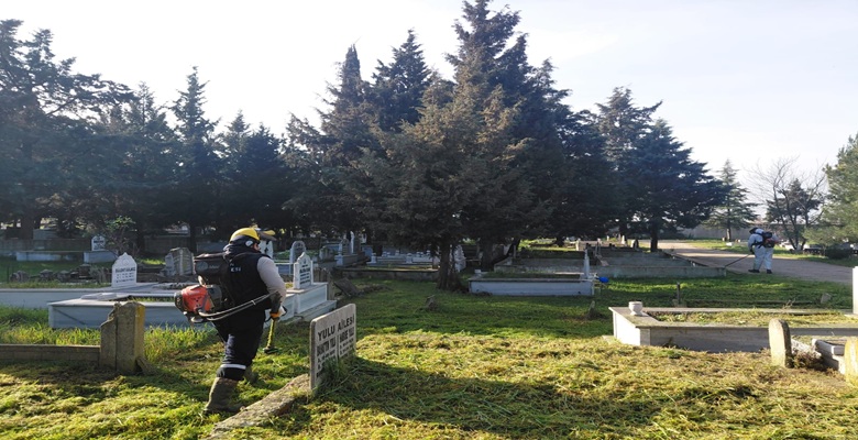Ekipler, mezarlıklarda da yoğun bir çalışma programı uyguluyor. Bu kapsamda mezarlık alanlarında temizlik yapılırken yabani otlar biçiliyor, mezar taşları temizleniyor ve çevre düzenlemeleri gerçekleştiriliyor. Yapılan çalışmalarla vatandaşların kabir ziyaretlerini daha temiz ve düzenli bir ortamda gerçekleştirmesi amaçlanıyor.