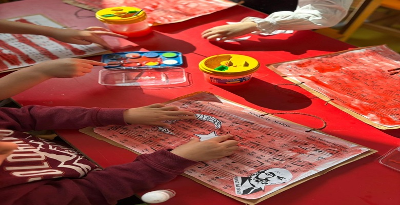 Minikler, büyük bir dikkatle dinledikleri sunumun ardından saygı duruşunda bulundular ve hep birlikte İstiklâl Marşı’nı coşkuyla okudular. Programın devamında çocuklar, İstiklâl Marşı temalı ve Mehmet Âkif Ersoy’un resmedildiği boyama, el işi ve yaratıcı çalışmalarla duygu ve düşüncelerini kâğıda döktüler.