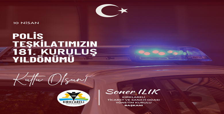 Her gün, her saat görev başında olan polislerimizin; suçla mücadeleden trafik düzenine, toplumsal olayların yönetiminden acil durum ve afet hizmetlerine kadar daima halkımızın yanında yer aldığına vurgu yapan Kırklareli Ticaret ve Sanayi Odası (Kırklareli TSO) Yönetim Kurulu Başkanı Soner Ilık, “10 Nisan Türk Polis Teşkilatının 181. Kuruluş Yıldönümü” dolayısıyla yaptığı açıklamasında şunları kaydetti: