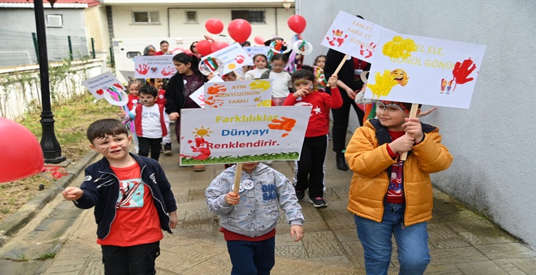 Etkinlikte çocuklar, “Beni olduğum gibi kabul et, bu bana yeter.”, “Otizm, hayatın bir parçasıdır.”, “Benim dünyam çok renkli, katılmak ister misin?” ve “Renklerimiz farklı, kalplerimiz aynı.” vb. yazılı pankart ve dövizlerle farkındalık yürüyüşü gerçekleştirdi.