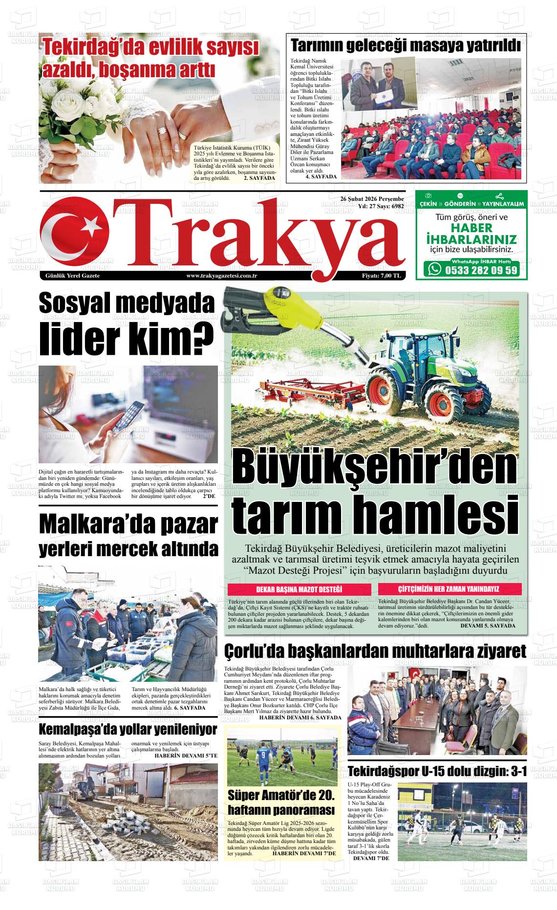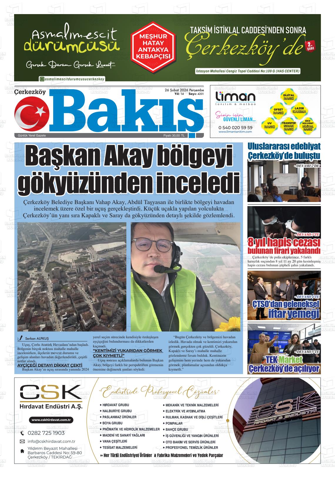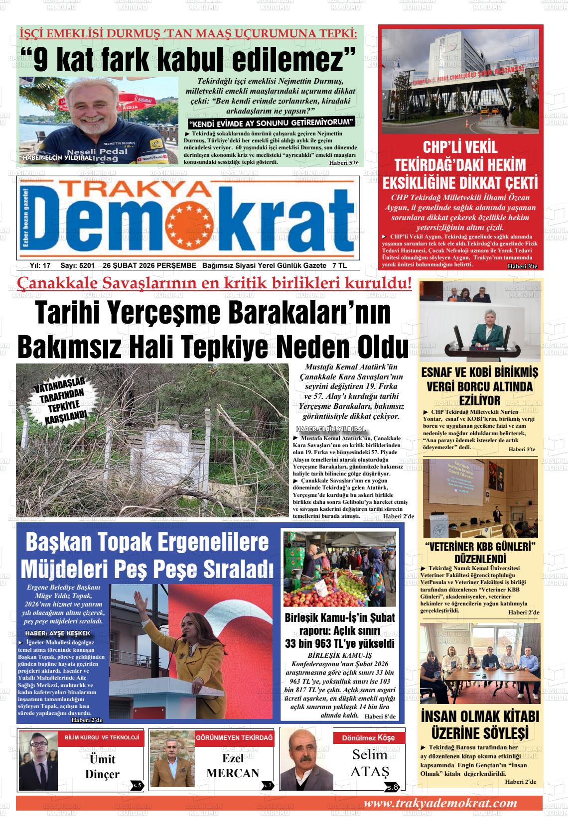 26 Şubat 2026, Perşembe Günü Manşeti