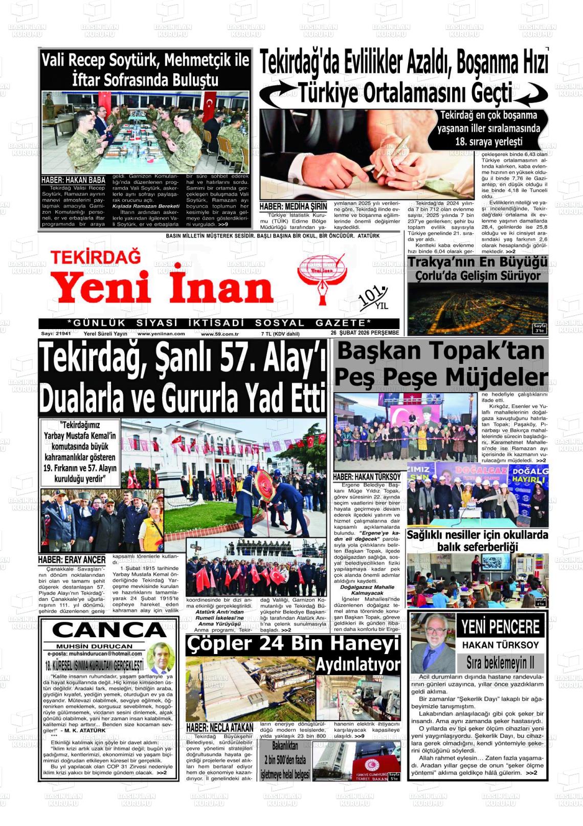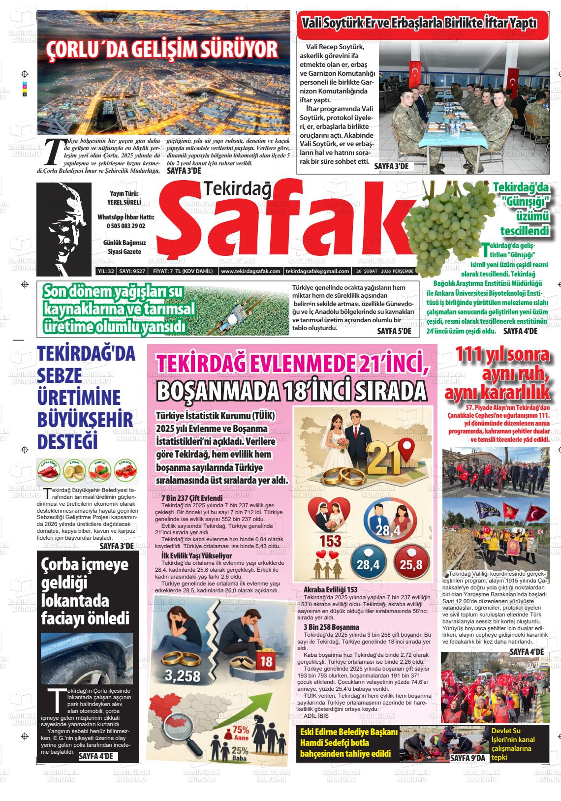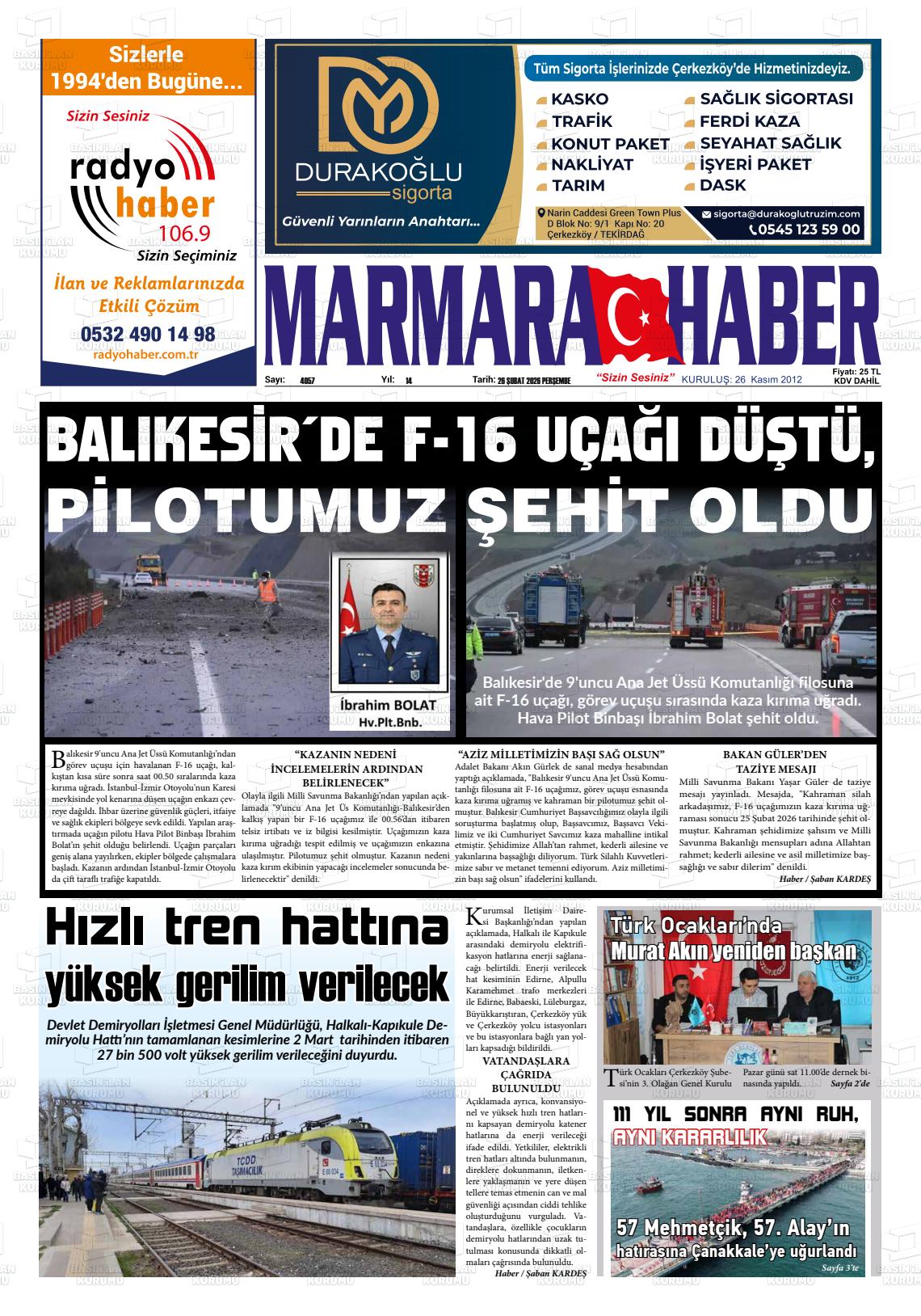 26 Şubat 2026, Perşembe Günü Manşeti